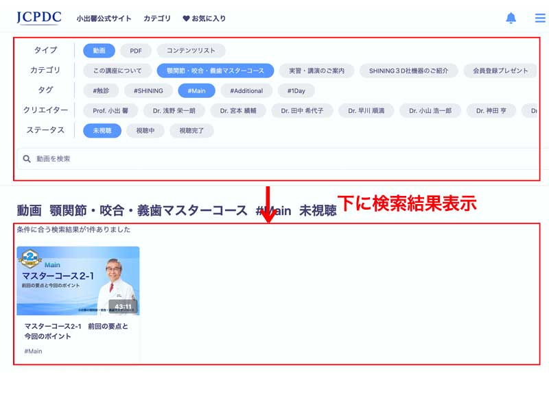 - カテゴリから「小出馨の顎関節・咬合・義歯マスターコース」を選択